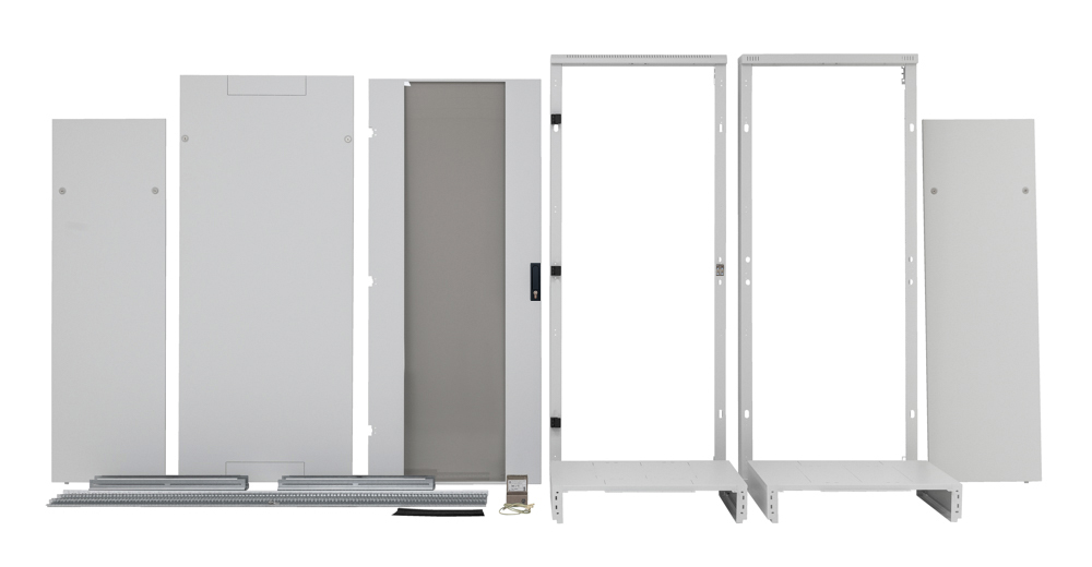 Das System ermöglicht bei 800 mm breiten Schränken die Installation der verstellbaren Schienen im Abstand von 19“, 21“ und 23”. Eine weitere Möglichkeit ist, die Vertikalen im 19”-Abstand zu einer Seite zu verschieben und damit mehr Platz auf der anderen Seite zu haben.