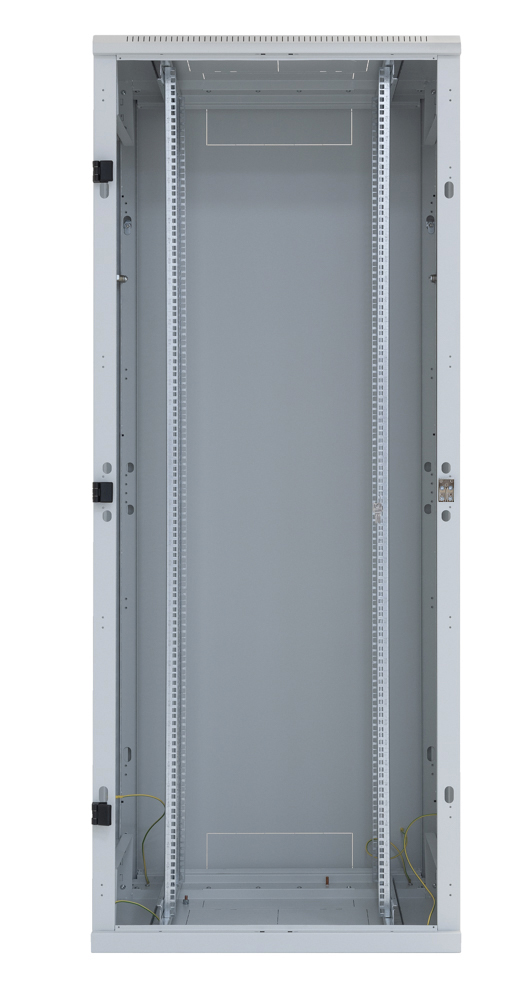 Bei Verteilern mit einer Tiefe über 800 mm liefern wir bereits in der Grundausstattung ein drittes Paar vertikaler Befestigungsschienen, die dank ihres offenen Profils die Installation tieferer Komponenten nicht beeinträchtigen. An den mittleren Vertikalen können kürzere Komponenten mit Hilfe verschiedener Typen von Halterungen befestigt werden (optionales Zubehör).