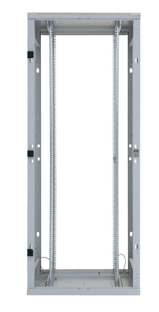 Die breiten Tragelemente des Rahmens sind für die zusätzliche Montage von Zubehör, z. B. Steckdosenleisten oder vertikalen Kabelführungspanels, bestimmt, die so keinen 19”-Raum im Verteiler einnehmen. Dank der durchdachten Befestigung stellen Steckdosenleisten auch in 600 mm breiten Schränken kein Hindernis für den Einsatz von ausziehbaren Servern dar.