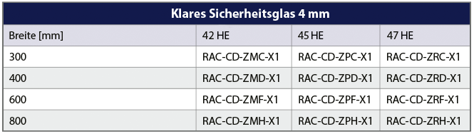 Die Schiebetüren für Datenzentren haben einen Einsatz aus 4 mm starkem Sicherheitsglas. Die Standardversionen gibt es für 1200 mm breite Gänge. Alle hier genannten Türen sind selbstschließend mit Gravitationsantrieb und mit einem SoftClose-Anschlagmechanismus versehen. Die Türen verfügen über eine Oberlaufschiene auf Trägerplatten (30 mm stark – Bestandteil des Lieferumfangs), die vor den Verteilern befestigt sind. Deshalb können die Türen auch bei Schränken mit Sockeln (mit dem Zusatzset RAx-CD-AP2-D2) bzw. vor einem